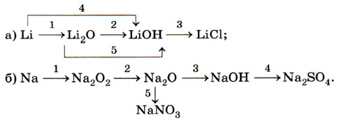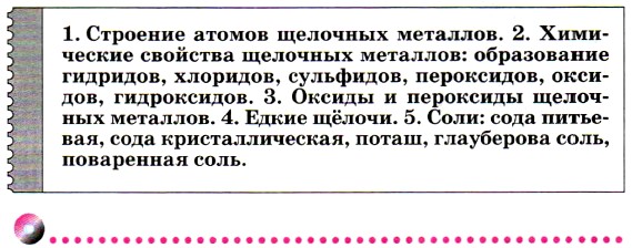 Скорость взаимодействия щелочного металла с водой будет увеличиваться от лития к цезию (почему?). Соединения щелочных металлов. В свободном виде в природе щелочные металлы не встречаются из-за своей исключительно высокой химической активности. Некоторые их природные соединения, в частности соли натрия и калия, довольно широко распространены, они содержатся во многих минералах, растениях, природных водах. Рассмотрим основные соединения щелочных металлов на примере соединений натрия и калия — наиболее важных представителей этой группы элементов. Оксиды М2O — твёрдые вещества. Имеют ярко выраженные основные свойства: взаимодействуют с водой, кислотами и кислотными оксидами (запишите уравнения соответствующих реакций). Оксиды натрия Na2O и калия К2O получают, прокаливая пероксиды с соответствующими металлами, например: