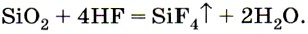 А вот для распознавания фтороводородной кислоты и её солей (фторидов) нитрат серебра в качестве реактива непригоден, так как образующийся фторид серебра AgF растворим в воде. Для доказательства присутствия в растворе фторид-ионов F- можно использовать реакцию с ионами кальция Са2+ так как фторид кальция CaF2 выпадает в осадок (рис. 97). Своё название плавиковая кислота получила из-за уникального свойства: при взаимодействии с оксидом кремния (IV), входящим в состав стекла, как бы плавить его: