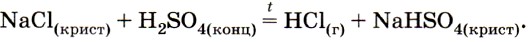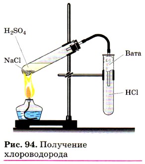 В лабораторных условиях для получения хлороводорода используют реакцию, проводимую при нагревании (рис. 94):