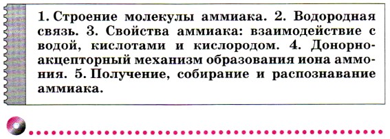 1. Каково электронное и пространственное строение молекулы аммиака? 2. Перечислите области применения аммиака. Какие свойства аммиака лежат в основе его применения в медицине, холодильных установках? 3. Какую химическую связь называют водородной? В чём особенности водородной связи? Что можно сказать о прочности водородных связей по сравнению с ковалентными и ионными? Какое значение имеет водородная связь в химии и биологии? 4. Приведите примеры веществ, между молекулами которых образуются водородные связи. Как это отражается на физических свойствах этих веществ? 5. На примере образования катиона аммония из молекулы аммиака объясните принцип образования ковалентной связи по донорно-акцепторному механизму. Является ли связь, образованная по донорно-акцепторному механизму, особым типом химической связи? Объясните почему. 6. Как изменится окраска фенолфталеина при добавлении его к нашатырному спирту? Объясните ответ, составив уравнение химической реакции. 7. Какую степень окисления имеет азот: а) в аммиаке; б) в хлориде аммония; в) в нитрате аммония; г) в сульфате аммония? 8. Используя метод электронного баланса, определите коэффициенты в следующей схеме химической реакции:
