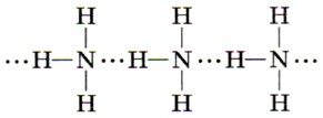 Три общие электронные пары смещены в сторону более электроотрицательного атома азота, а так как молекула аммиака имеет форму треугольной пирамиды (рис. 128), то в результате смещения электронных пар возникает диполь, т. е. молекула с двумя полюсами. Молекулы аммиака (в жидком аммиаке) взаимодействуют, связываясь друг с другом: