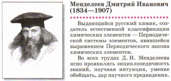 Глава 1. Общая характеристика химических элементов и химических реакций § 3. Периодический закон и Периодическая система химических элементов Д. И. МенделееваС первых уроков химии вы использовали таблицу Д. И. Менделеева. Она наглядно демонстрирует, что все химические элементы, образующие вещества окружающего нас мира, взаимосвязаны и подчиняются общим закономерностям, т. е. представляют собой единое целое — систему химических элементов.