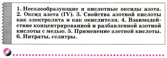 Глава 3. Неметаллы § 31. Кислородные соединения азотаОксиды. Азот образует пять оксидов со степенями окисления +1, +2, +3, +4, +5. Оксиды N2O и NO несолеобразующие (что это означает?), а остальные оксиды — кислотные: