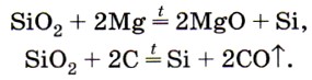 Кремний получают, восстанавливая его из оксида кремния (IV) магнием или углеродом: