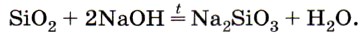 Оксид кремния (IV), или диоксид кремния, или кремнезём Si02, как и С02, является кислотным оксидом. Однако в отличие от С02 имеет не молекулярную, а атомную кристаллическую решётку. Поэтому Si02 твёрдое и тугоплавкое вещество. Он не растворяется в воде и кислотах, кроме, как вы знаете, плавиковой, но взаимодействует при высоких температурах с щелочами с образованием солей кремниевой кислоты — силикатов: