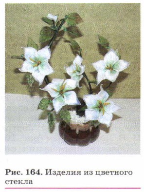 Из расплавленного кварца изготавливают различную кварцевую химическую посуду, которая может выдерживать высокую температуру и не трескается при резком охлаждении. Соединения кремния служат основой для производства стекла и цемента. Обычное оконное стекло имеет состав, который можно выразить формулой Na2O • СаО • 6SiO2. Его получают в специальных стекловаренных печах сплавлением смеси соды, известняка и песка. Отличительная особенность стекла — способность размягчаться и в расплавленном состоянии принимать любую форму, которая сохраняется при застывании стекла. На этом основано производство посуды и других изделий из стекла. Дополнительные качества стеклу придают различные добавки. Так, введением оксида свинца получают хрустальное стекло, оксид хрома окрашивает стекло в зелёный цвет, оксид кобальта — в синий и т. д. (рис. 164). Стекло — одно из древнейших изобретений человечества. Уже 3—4 тыс. лет назад производство стекла было развито в Египте, Сирии, Финикии и Причерноморье.