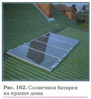 Свойства кремния. Вы пользуетесь микрокалькулятором с солнечной батарейкой и поэтому имеете представление о кристаллическом кремнии. Это полупроводник. В отличие от металлов, с повышением температуры его электропроводность увеличивается. На спутниках, космических кораблях, станциях и крышах домов (рис. 162) устанавливают солнечные батареи, преобразующие солнечную энергию в электрическую. В них работают кристаллы полупроводников, и в первую очередь кремния.
