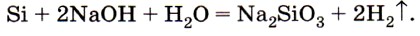 Повышенная реакционная способность силана по сравнению с метаном СН4 объясняется тем, что размер атома у кремния больше, чем у углерода, поэтому химические связи Si—Н менее прочные, чем связи С—Н. Кремний взаимодействует с концентрированными водными растворами щелочей, образуя силикаты и водород: