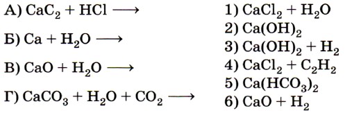 Знание химических свойств простых веществ, указанных в левом столбце, позволит легко установить верные соответствия. Ответ: 635. 9. Установите соответствие между исходными веществами (левый столбец) и продуктами их взаимодействия (правый столбец).
