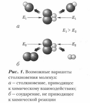 Суть химической реакции заключена в превращении исходных веществ (реагентов) в продукты реакции. Проблема. Всегда ли между веществами происходят химические реакции? Какие условия необходимы для их возникновения и протекания? Выясним условия, необходимые для возникновения реакций. Каждое вещество как химическая система обладает внутренней энергией. Она включает в себя кинетическую энергию образующих ее частиц (молекул, атомов, ионов) и потенциальную энергию их возможных взаимодействий между собой. Чтобы произошла реакция между веществами-реагентами, их взаимодействующие частицы должны столкнуться и, кроме этого, обладать достаточной энергией для преодоления некоторого энергетического барьера, мешающего им вступить во взаимодействие. Минимальная энергия, которой должны обладать молекулы (или другие частицы вещества), чтобы их столкновение привело к взаимодействию и образованию новых веществ, называется энергией активации.