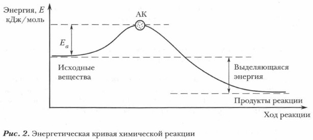 Энергия активации представляет собой разность между высокой потенциальной энергией АК и низкой потенциальной энергией исходных веществ: Еа = ЕАК - Еисх.в-в (рис. 2).