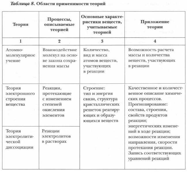 Эти теории опираются на различные факты, закономерности и, соответственно, имеют различные области применимости (табл. 8).