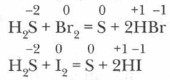 2. Сероводород — сильный восстановитель. При взаимодействии с простыми и сложными веществами — окислителями (например, с галогенами и солями) сероводород проявляет свойства сильного восстановителя.