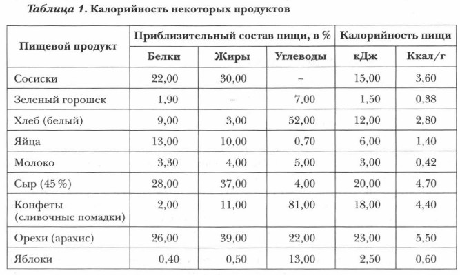 Дополнительный материал к главе 1 Энергетика и пища. Калорийность жиров, белков и углеводов (окончание)Жиры в организме человека служат основным «топливом», они также поступают с пищей, особенно жирной. В результате их окисления человек и животные получают энергию, обеспечивающую их существование. Так, при окислении 1 г жиров выделяется около 38,9 кДж (9,3 ккал) теплоты. Процесс сгорания жиров в организме можно представить схемой: Жиры + O2 → СO2 + Н2O + Q В реальности этот процесс достаточно сложный. Жиры нерастворимы в воде, поэтому они не могут без предварительной подготовки всасываться через стенки пищеварительного тракта. Под воздействием фермента «живой катализатор» поджелудочной железы жиры в тонком кишечнике расщепляются до глицерина и органических жирных кислот, которые затем под воздействием желчи печени переходят в растворимую форму и всасываются ворсинками кишечника, где часть их вновь превращается в жир, но уже свойственный данному организму. Этот жир затем по лимфатической системе поступает в кровь и разносится ею в жировые ткани в другие органы тела. В процессе обмена веществ в клетках жир вновь взаимодействует с водой (гидролизуется), продукты гидролиза, постепенно окисляясь, выделяют энергию, необходимую для протекания всех процессов, связанных с жизнедеятельностью. Неизрасходованный жир накапливается в жировых тканях и выполняет функцию запасного питательного вещества. Он скапливается под кожей и вокруг внутренних органов, предохраняя организм от переохлаждения. Однако его избыток в организме приводит к ожирению, которое является причиной болезней сердца, печени, а также диабета и др. Содержание жиров в продуктах питания часто указывается на их упаковках. Содержание жира в продуктах питания отмечается как масса жира в 100 г продукта. Наиболее богаты жирами такие продукты питания, как жирные сыры (до 45 г жира), ливерная колбаса (41 г), салями (50 г), свиное сало (65 г), грецкие орехи (64 г) и др. В молоке также содержится жир, но его немного. Жирность коровьего молока в среднем составляет 3,2-3,7 %, а козьего — 4,8 %. Общеизвестно, что при заболеваниях и в преклонном возрасте более полезны растительные жиры. Белки — обязательный компонент пищи человека, необходимый для осуществления биохимических функций (строительной, транспортной, каталитической и др.). Для их осуществления необходимы белки разного вида, как животного, так и растительного происхождения. На долю белков приходится около 45% сухой массы животного организма. Они составляют подавляющую часть сухой массы мышц, нервных волокон, клеток головного мозга и других тканей. Белки — главный конструктивный материал организма. Поступая в организм с пищей, белки претерпевают ряд сложных биохимических превращений, в которых чужеродные для индивида белки расщепляются до разных аминокислот, из которых затем синтезируются белки, нужные именно для этого организма. Поэтому в состав пищи надо обязательно включать разнообразную белковую пищу. В сутки на 1 кг массы тела в организм человека должно поступать 0,8 г белков разного вида. Продукты, богатые белками, — это мясо, рыба, яйца, творог и другие молочные продукты, соевые бобы, горох и др. Неполноценное белковое питание может стать причиной тяжелых заболеваний. Поэтому в рационе человека белки должны быть не только в необходимом 