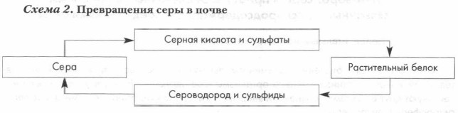 Дополнительный материал к главе 4 Круговорот серы в природе. Экологические проблемы, связанные с кислородсодержащими соединениями серыСера относится к биогенным элементам, являющимся основой строения и жизнедеятельности живого организма. Живые организмы, составляющие биосферу Земли, взаимодействуют друг с другом, с солнечной энергией, с веществами, образующими атмосферу, гидросферу и литосферу. Устойчивость биосферы к воздействию внешних факторов, к которым относится и человеческая деятельность, ухудшающая ее экологическое состояние, обусловлена множеством циклических процессов обмена химическими элементами между атмосферой, гидросферой и литосферой. К таковым относятся и круговороты химических элементов в природе. Сера как элемент в круговороте веществ включается в последовательный цикл превращений, где одни формы ее существования переходят в другие в ходе разных химических реакций. Наиболее важное значение для жизнедеятельности имеют те циклы превращений серы, которые происходят в почве, в воздухе и в водоемах. В почве цикл превращений происходит постоянно. Большую роль здесь играют растения, которые получают серу из почвы. Находящаяся в почве сера представлена в виде сульфатов, продуктов разложения горных пород, содержащих серу, а также органических веществ животного и растительного происхождения. Корни растений поглощают почвенную серу, которая, химически преобразуясь, входит в состав серосодержащих аминокислот, т. е. в состав растительных белков. После отмирания растений сера возвращается в почву. Этот переход осуществляется многочисленными микроорганизмами (серобактерии и др.), а также под воздействием почвенного воздуха. При гниении белков выделяется сероводород. Он окисляется кислородом воздуха, но еще быстрее процесс окисления идет под воздействием серобактерий, получающих необходимую для их жизни энергию за счет следующей экзотермической реакции: 2H2S + O2 = 2H2O + 2S↓ + 1062 кДж Образующаяся сера в зависимости от наличия или отсутствия кислорода либо превращается в залежи свободной серы, либо идет ее дальнейшее окисление, в котором участвует другой вид бактерий, ускоряющих этот процесс: 2S + SO2 + 2Н2O = 2H2SO4 + 2102,2 кДж Получающаяся в этой реакции серная кислота реагирует с содержащимися в почве или воде солями более слабых кислот, образуя сульфаты. Помимо серы растительного происхождения растения могут вводить в круговорот значительное количество серы в виде ее соединений (и прежде всего сульфатов), переносимых воздушными массами, дождевой водой из промышленных районов (заводские дымы и др.). Сульфаты поглощаются корнями растений и вымываются подземными водами, обеспечивая продолжительность круговорота. Цикл превращений серы в почве можно в общем виде представить следующей схемой.