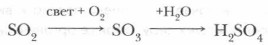В атмосферу сера попадает из разных источников в виде следующих газообразных соединений: сероводород, диоксид серы и др. Примерно треть всех соединений серы, попадающих в атмосферу, имеет антропогенное происхождение, т. е. связана с производственной деятельностью человека. Повышенное содержание диоксида серы в атмосфере создает неблагоприятные экологические ситуации, связанные с выпадением «кислотных дождей». В атмосфере оксид серы (IV) под действием солнечной энергии окисляется до газообразного оксида серы (VI), а при взаимодействии последнего с водяным паром образуются капельки серной кислоты: