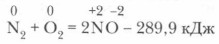 Большинство нитридов металлов — механически, термически и химически стойкие соединения, что позволяет использовать их в качестве высокопрочных материалов. 2. Взаимодействие азота с неметаллами. С неметаллами (S, Р, O2 и др.) азот взаимодействует при еще более высокой температуре. Так, реакция азота с кислородом начинается при температуре 3000-4000 °С (например, при электрическом разряде). Эта реакция эндотермическая (энергия связи в молекуле оксида азота (II) составляет 627 кДж/моль, т. е. значительно меньше, чем в молекуле азота):