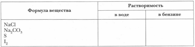 В чем значение относительной электроотрицательности? Назовите особенности строения молекул воды. Вы уже знаете, что растворами называют гомогенные (однородные) системы. Наиболее распространены жидкие растворы, причем в земных условиях в качестве растворителя чаще выступает вода. Однако вода — не единственный растворитель. Известны многочисленные неводные растворители. К наиболее изученным относятся сероуглерод, четыреххлористый углерод, жидкий аммиак, органические растворители: бензин, керосин, спирты и др. Познакомимся с одним из них с помощью лабораторного опыта.