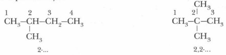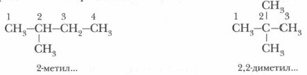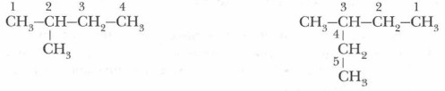 3. В названии цифрой указывают номер атома углерода, с которым связан заместитель (радикал), начиная с простейшего радикала. Если у одного атома углерода находятся два одинаковых заместителя, то номер повторяется дважды, через запятую: