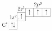 В возбужденном состоянии один из валентных электронов находится на 2s-орбитали, которая имеет форму шара, а три других электрона — на трех 2р-орбиталях, которые имеют гантелеобразную форму. При образовании химических связей, например с атомами водорода, должно образоваться четыре С—Н связи: одна s—s-связь и три s—р-связи. Однако экспериментально доказано, что в молекуле метана все четыре ковалентные связи С—Н равноценны: