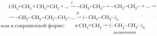 Глава 7. Общие сведения об органических соединениях Непредельные углеводороды этиленового ряда5. Реакция полимеризации — процесс соединения одинаковых молекул в более крупные молекулы: