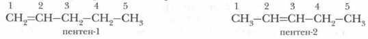 Правило составления индивидуального названия углеводорода остается прежним: сначала выбирают длинную углеродную цепь с двойной связью и нумеруют атомы углерода, начиная с того конца, к которому ближе двойная связь. Положение двойной связи обозначают в конце названия углеводорода номером того атома углерода, от которого она начинается.