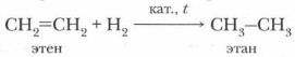 Этилен горит светящимся пламенем. Почему? Алкены — химически активные вещества. Они легко вступают в реакции присоединения за счет разрыва π-связи. 2. Присоединение водорода: