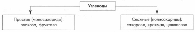 Углеводы, как и жиры, играют роль источника энергии, необходимой для жизнедеятельности организма. Название «углеводы» связано с их составом. Молекулы углеводов содержат углерод, водород и кислород, причем водород и кислород находятся в таком же соотношении, как и в воде. Общая формула углеводов — Сm(Н2O)n. Позже были выделены углеводы, не отвечающие этой формуле, но исторически сложившееся название осталось. Углеводы подразделяются на простые (моносахариды) и сложные (полисахариды):