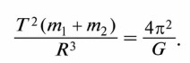 Поскольку в правой части этого выражения находятся только постоянные величины, оно справедливо для любой системы двух тел, взаимодействующих по закону тяготения и обращающихся вокруг общего центра масс, — Солнце и планета, планета и спутник. Определим массу Солнца, для этого запишем выражение: