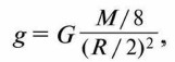 Сила тяжести на этой глубине определяется массой вещества, заключенной в радиальном столбике, высота которого R/2, площадь S, а также ускорением свободного падения на поверхности сферы радиусом R/2. Масса вещества в этом столбике равна: