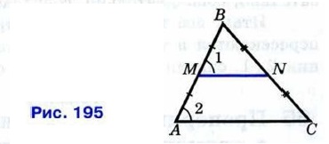Доказательство Пусть MN — средняя линия треугольника АВС (рис. 195). Докажем, что MN || AC и