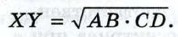 Треугольники АВС и ACD подобны по первому признаку подобия треугольников (∠A — общий, ∠ACB = ∠ADC = 90°). Точно так же подобны треугольники АВС и CBD (∠B — общий и ∠ACB = ∠BDC- 90°), поэтому ∠A = ∠BCD. Наконец, треугольники ACD и CBD также подобны по первому признаку подобия (в этих треугольниках углы с вершиной D прямые и ∠A = ∠BCD), что и требовалось доказать. Отрезок XY называется средним пропорциональным (или средним геометрическим) для отрезков АВ и CD, если