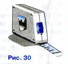 § 4. Измерение отрезков Единицы измерения. Измерительные инструменты. ГеометрияДля измерения отрезков и нахождения расстояний на практике используют различные единицы измерения. Стандартной международной единицей измерения отрезков выбран метр — отрезок, приближённо равный При измерении небольших расстояний, например расстояния между точками, изображёнными на листе бумаги, за единицу измерения принимают сантиметр или миллиметр. Расстояние между отдельными предметами в комнате измеряют в метрах, расстояние между населёнными пунктами — в километрах. Используются и другие единицы измерения, например дециметр, морская миля (1 миля равна 1,852 км). В астрономии для измерения очень больших расстояний за единицу измерения принимают световой год, т. е. путь, который свет проходит в течение одного года. Мы назвали единицы измерения расстояний, которые используются на практике в наше время. В старину в разных странах существовали свои единицы измерения. Так, на Руси использовались аршин (0,7112 м), сажень (2,1336 м) и др. На практике для измерения расстояний пользуются различными инструментами. Например, в техническом черчении употребляется масштабная миллиметровая линейка. Для измерения диаметра трубки используют штангенциркуль (рис. 29). С его помощью можно измерять расстояния с точностью до 0,1 мм. Для измерения расстояний на местности пользуются рулеткой, которая представляет собой ленту с нанесёнными на ней делениями (рис. 30).