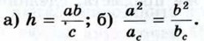 572. Найдите: а) h, а и b, если bc = 25, аc = 16; б) h, а и b, если bc = 36, аc = 64; в) а, с и аc, если b = 12, bc = 6; г) b, с и bс, если а = 8, аc = 4; д) h, b, аc и bc, если а = 6, с = 9.