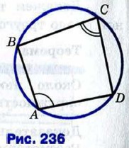 Это свойство легко установить, если обратиться к рисунку 236 и воспользоваться теоремой о вписанном угле. В самом деле,