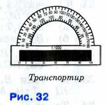 § 5. Измерение углов Градусная мера углаИзмерение углов аналогично измерению отрезков — оно основано на сравнении их с углом, принятым за единицу измерения. Обычно за единицу измерения углов принимают градус — угол, равный Положительное число, которое показывает, сколхжо раз градус и его части укладываются в данном угле, называется градусной мерой угла. Для измерения углов используется транспортир (рис. 32).