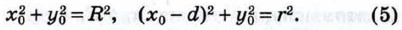 Вычитая из первого равенства второе, подучаем равенство 2x0d - d2 = R2 - r2, откуда