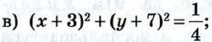 § 3. Уравнения окружности и прямой Ответы к § 3. Уравнения окружности и прямой960. а) А и С; б) В; в) В и D. 961. а) С; б) В; в) А и D. 963. а) (-4; -3), М;3);б) (4; 3), (-4; 3). 964. а) (3; 0), (3; 10); б) (-2; 5), (8; 5). 965. 1) х2 + у2 = 9; 2) х2 + у2 = 2; 966. а) х2 + (у-5)2 = 9; б) (х + 1)2 + (y - 2)2 = 4; 1 4 967. х2 + у2 = 10. 968. х2 + (у - 6)2 = 25. 969. а) (х - 2)2 + (y - 1)2 = 41; б) (х - 3)2 + (у - 1)2 = 5. 970. (х - 5)2 + у2 = 25, (х + 3)2 + у2 = 25; две окружности. 971. х2 + (у - 4)2 = 25. 972. б) х + у- 7 = 0; в) 3х - 2у + 2 = 0. 973. 7х - у + 3 = 0. 974. а) х - у = 0, у - 1 = 0; б) 3х - 5у + 5 = 0. 975. (-4; 0) и (0; 3). 976. (3;-2). 977. х = 2 и у = 5. 979. 7. 980. 5х + 2у - 10 = 0, 5х - 2у - 10 = 0, 5х + 2у + 10 = 0, 5х - 2у + 10 = 0 или 2х + 5у- 10 = 0, 2х - 5у -10 = 0, 2х + 5y + 10 = 0, 2х - 5у+ 10 = 0. 982. а) Окружность радиуса 4 с центром В; б) окружность радиуса 983. Окружность с центром в точке О радиуса 985. Серединный перпендикуляр к отрезку АВ', где В' и В — точки, симметричные относительно точки А. 986. Прямая ВС. Указание. Выбрать прямоугольную систему координат так, чтобы точки А и В лежали на оси Ох и были симметричны относительно оси Оу. 987. Прямая, проходящая через точку пересечения диагоналей ромба и перпендикулярная к стороне ромба.