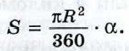 Выведем формулу для вычисления площади S кругового сектора радиуса R, ограниченного дугой с градусной мерой α. Так как площадь всего круга равна πR2, то площадь кругового сектора, ограниченного дугой в 1°, равна Поэтому площадь S выражается формулой