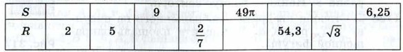 1114. Перечертите таблицу и, используя формулу для площади S круга радиуса R, заполните пустые клетки. Воспользуйтесь значением π = 3,14.
