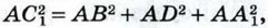 Ребро СС1 перпендикулярно к плоскости грани ABCD, т. е. перпендикулярно к любой прямой, лежащей в плоскости этой грани и проходящей через точку С. Поэтому угол АСС1 — прямой. Из прямоугольного треугольника АСС1 по теореме Пифагора получаем: Но АС — диагональ прямоугольника ABCD, поэтому AC2 = AB2 + AD2. Кроме того, СС1 = ВВ1 = АА1 Следовательно, Остановимся ещё на одном свойстве, иллюстрирующем аналогию между прямоугольником и прямоугольным параллелепипедом. Мы знаем, что площадь прямоугольника равна произведению его измерений. Оказывается, что аналогичное утверждение справедливо и для прямоугольного параллелепипеда: объём прямоугольного параллелепипеда равен произведению трёх его измерений.