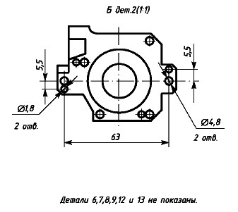 Рассмотрим выполнение сборочных чертежей и основного комплекта конструкторской документации на примере специального вентилятора. Чертеж общего вида вентилятора (проектная документация технического проекта) приведен на рис. 13.2, таблица составных частей для удобства чтения оформлена отдельно на рис. 13.3. Воздух в корпус 1 вентилятора поступает через отверстие диаметром 21 мм в крышке 2 и выдувается через трубку 6 с выходным диаметром 12 мм. Поток воздуха создается крыльчаткой 3, вращающейся в двух радиально-упорных шарикоподшипниках 14, закрепленных в корпусе 1. От внешнего привода крыльчатка вращается через зубчатое колесо 10, закрепленное на оси ступицы 3 крыльчатки штифтом 15. При установке вентилятора его крепят через два отверстия диаметром 4,8 мм в выступах крышки 2 и через два отверстия ∅ 1,8 мм — под штифты. Прокладка 9 из губчатой резины обеспечивает герметизацию соединения трубки с воздуховодом.