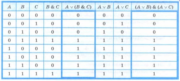 A ∨ (B & C) = (A ∨ B) & (A ∨ С).