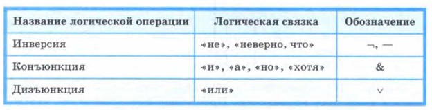 Таблицы истинности для основных логических операций: