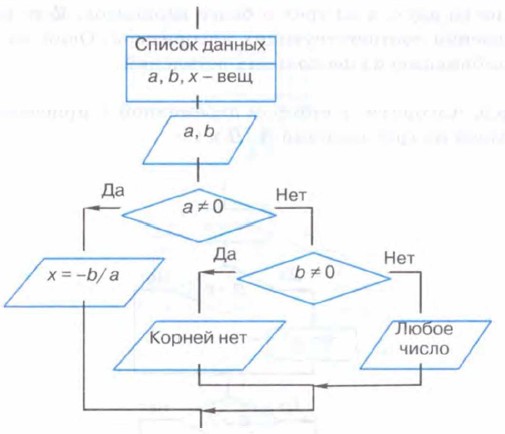 Пример 10. Алгоритм решения линейного уравнения ах + b = 0.