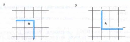 Подумайте, в какую клетку переместится Робот из клетки, обозначенной звёздочкой, при выполнении следующего фрагмента алгоритма.