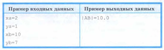 3. По заданным координатам точек А и Б вычислите длину отрезка АВ.