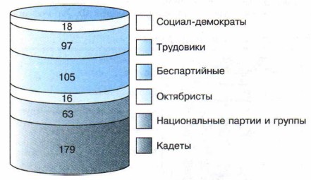 Глава I. Россия на рубеже XIX—XX вв. § 5. Первая российская революция. Реформы политической системы (окончание)Деятельность I Государственной думы27 апреля 1906 г. в присутствии Николая II в Петербурге состоялось торжественное открытие I Государственной думы. Её председателем был избран профессор Московского университета кадет С. А. Муромцев. Большевики и эсеры выборы в Думу бойкотировали. Депутаты, состоявшие членами одной партии или близкие по своим взглядам, распределились по фракциям. Разрабатывая Положение о выборах, правительство ставило цель обеспечить преобладание в Думе крестьян. Оно надеялось, что их консерватизм, склонность к традициям станут противовесом либерализму кадетов. Однако крестьяне, равнодушные в целом к политическим свободам, идеям парламентаризма, были одержимы мечтой о переделе земли. Не получив помещичьей земли от царя, они пришли за ней в Думу. Аграрный вопрос занял центральное место в деятельности Думы. 23 мая 1906 г. фракция трудовиков выступила с законопроектом, подписанным 104 депутатами.
