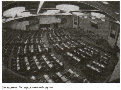 Глава IX. Россия в конце XX в. § 52. Политическая жизнь СССР в 1992—1999 гг. (окончание)Российский парламентаризмВ 90-е гг. Государственная дума стала одним из важнейших элементов новой политической системы. Выборы в Государственную думу проходили в 1993, 1995 и 1999 гг. С 1995 г. Дума избирается на 4 года. По Конституции Дума утверждает председателя правительства, решает вопрос о доверии правительству, назначает председателя Центрального банка, объявляет амнистию, утверждает федеральный бюджет. Однако главным в её деятельности является разработка законодательства, внесение и рассмотрение законопроектов. В 90-е гг. принято более 1000 законов по вопросам государственного строительства и экономической жизни, социального развития и обороны, экологии и бюджетной политики, национальной безопасности и финансам. Среди них такие важные для общества, как Гражданский, Уголовный, Семейный, Налоговый кодексы и др.