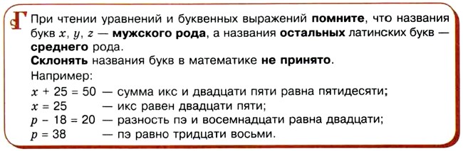 Если в равенство входит буква, то равенство может быть верным при одних значениях этой буквы и неверным при других её значениях. Например, равенство х + 2 = 5 верно при x = 3 и неверно при х = 4.